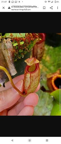 綺麗な個体 一つ目 カラフルな襟 蓋の裏 ブラシ状の毛は無いが蜜は出るみたい チビクロキノコバエが異様に口元に集る。lowii似の葉 パッと見lowii lowiiとreinwardtianaの自然交雑種。非常に珍しい個体。 調べたけど人工交配もまだなさそうな組み合わせ。 Wi…